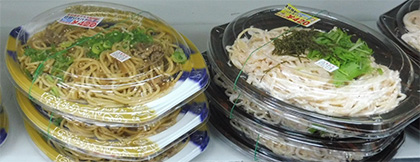 夏は冷やしで、冬はレンジ加温で、うどん・そば・ラーメン・パスタなど、コンビニでは人気の調理麺です。