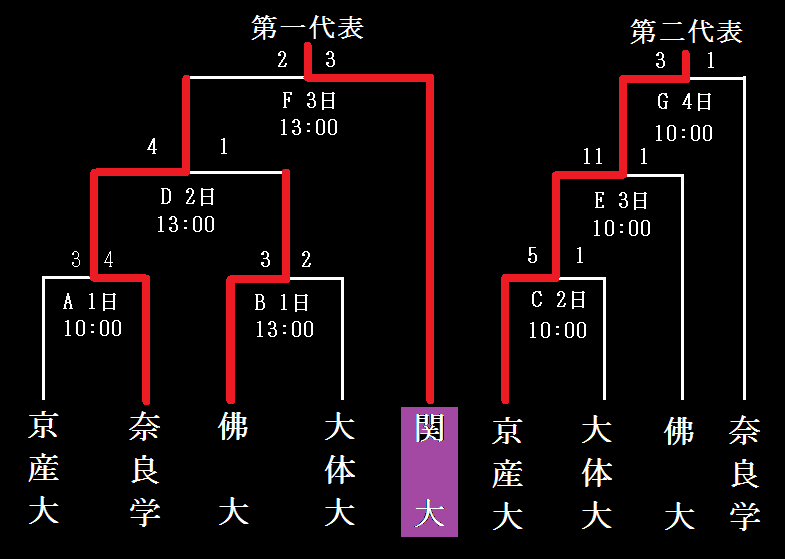 123456789計HE関西大学000100000130大阪体育大学000000000051関西大学