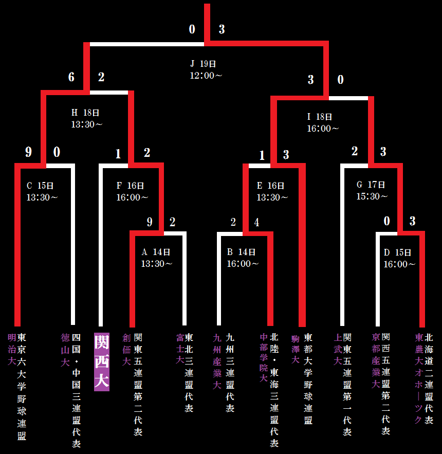 F 関西大 1 - 2 創価大 (10回タイブレーク) | ||