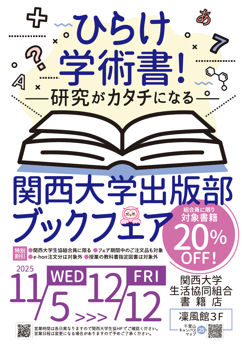 関西大学出版部ブックフェア「ひらけ学術書!―研究がカタチになる―」 組合員割引 【20%OFF】