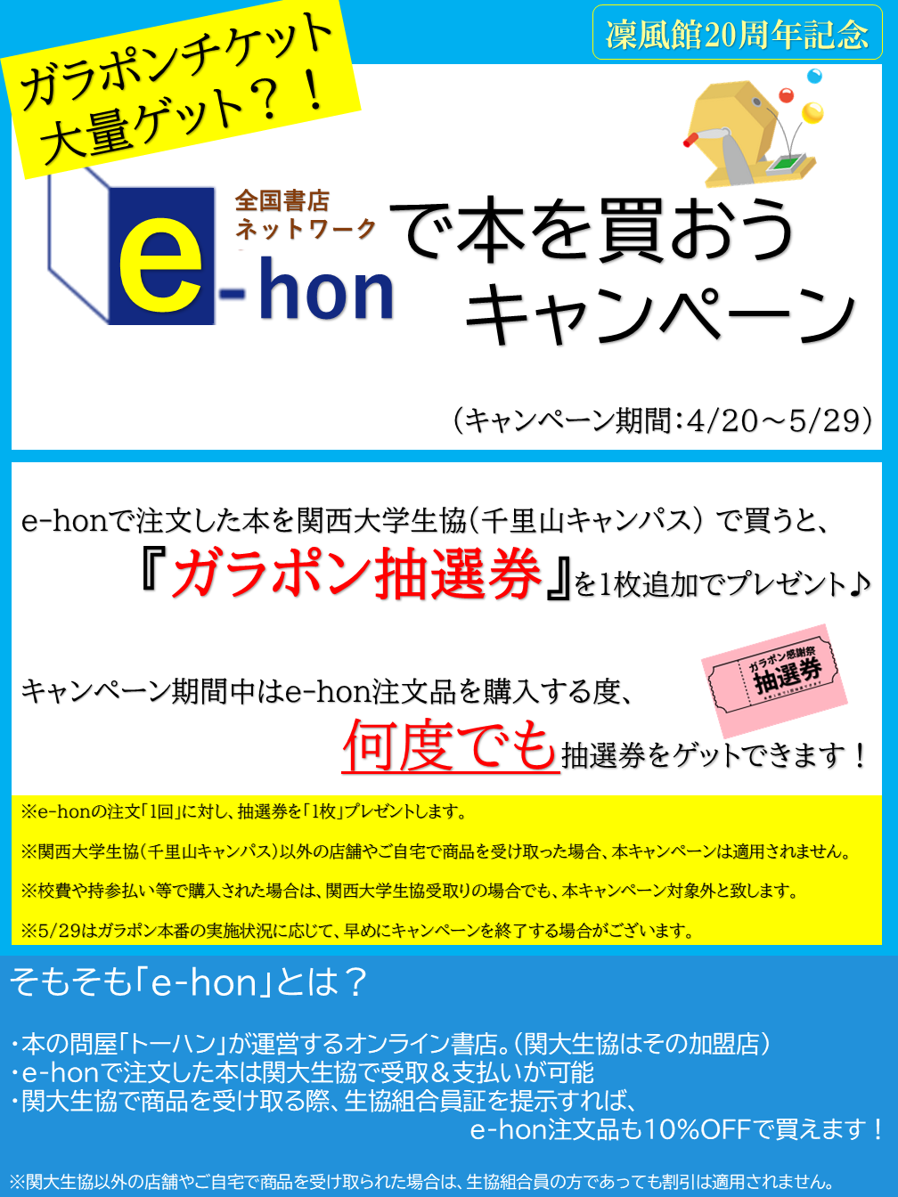 ※関西大学生協(千里山キャンパス)以外の店舗やご自宅で商品を受け取った場合、本キャンペーンは適用されません。