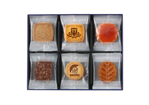 カイザーズver: 缶のフタには「カイザーズ」のクラブ写真とロゴがデザインされ、クッキーにはカイザーズのロゴがプリントされています。